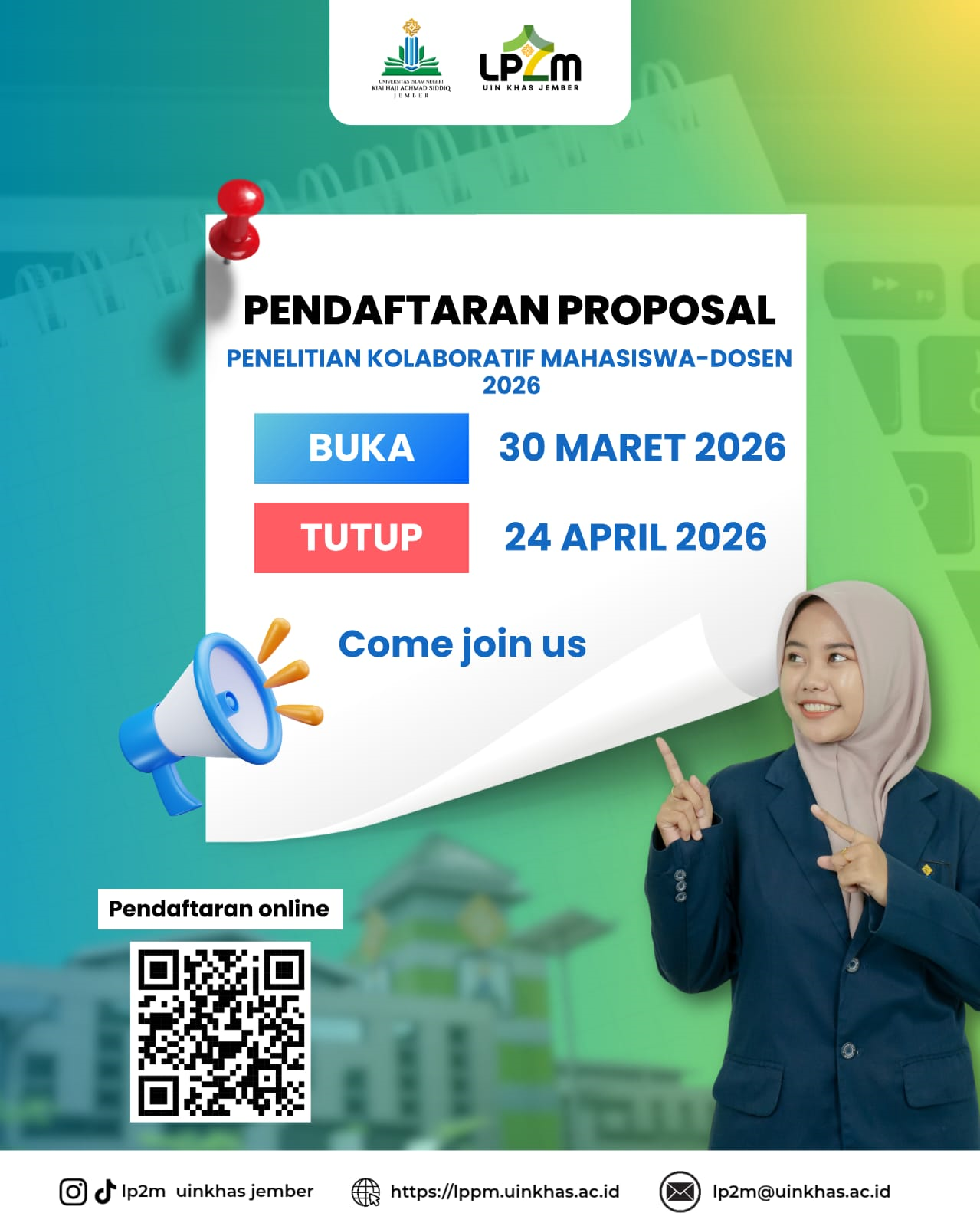 Kabar menggembirakan datang bagi seluruh sivitas akademika UIN KHAS Jember. Lembaga Penelitian dan Pengabdian kepada Masyarakat (LP2M) kembali membuka kesempatan emas melalui program Proposal Penelitian Kolaboratif Mahasiswa-Dosen Tahun 2026.