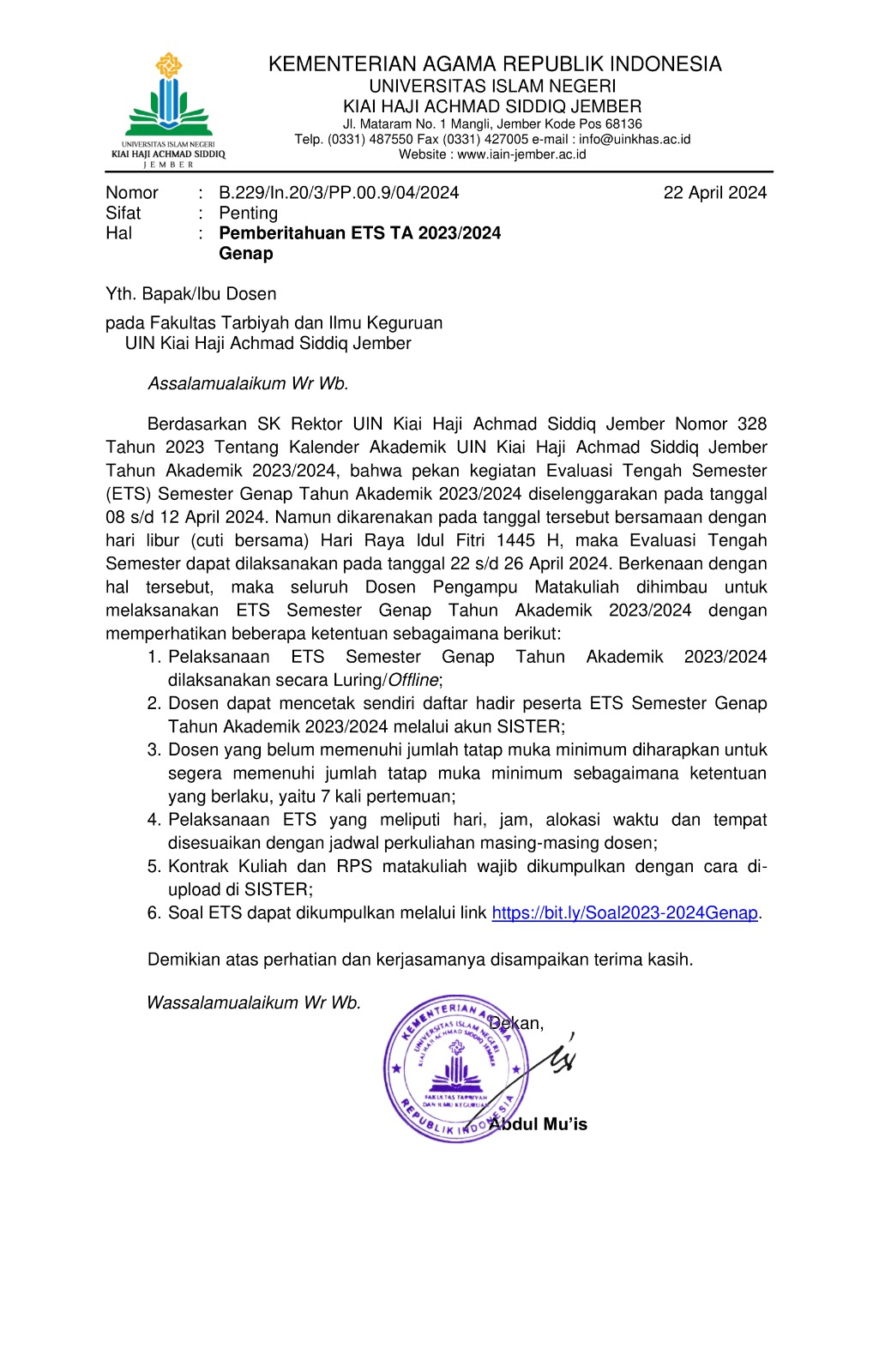 berikut ini pengumuman pemberitahuan ETS