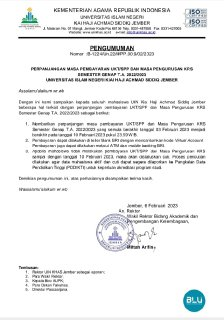 Masa Pembayaran UKT dan Pengurusan KRS yang sebelumnya berakhir tanggal 3 februari 2023 menjadi 10 Februari 2023.