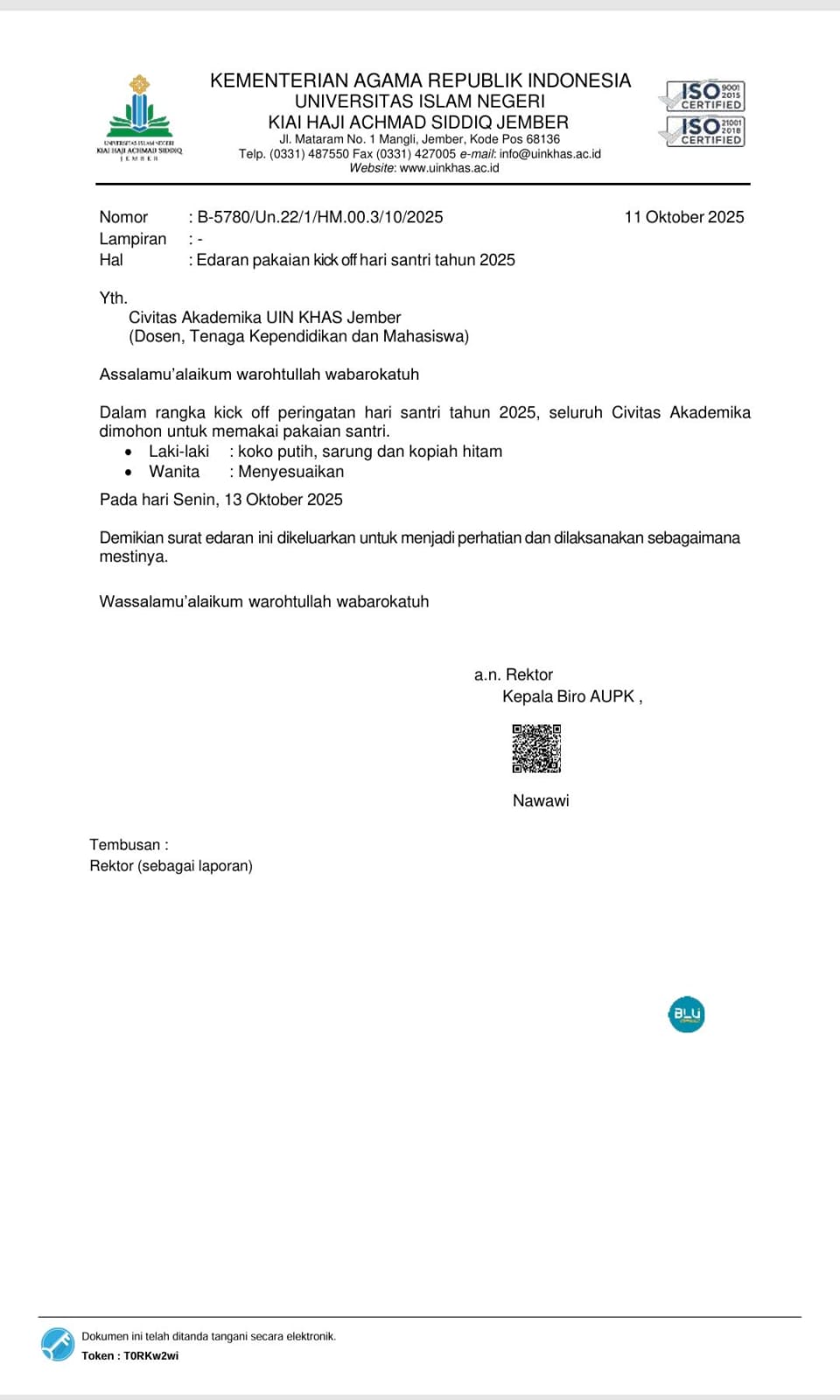 UIN KHAS Jember Gelar Upacara Peringatan Hari Kesaktian Pancasila 2025